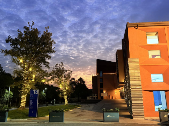 戏剧影视美术设计专业叶佳欣:在湖北美术学院的林间,夕阳透过枝叶给湖水镀上金辉,灵感在暮色里悄然生长。在湖北美术学院的校园一隅,湖水潋滟,纯白天鹅在草畔水湄间自在踱步,艺术的灵感也在这份鲜活里肆意生长,这一刻,艺术与自然温柔相拥。荷塘的翠叶、垂柳的丝绦,将艺术的诗意晕染进暮色的粉霞。远处的建筑隐于树影,这是艺术灵魂的居所。飞鸟掠过天际,水面泛起涟漪,每一处景致都如师生笔下的创作,在人文与自然的交融中,诉说着湖美独有的艺术浪漫。