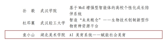 本次大赛获奖既是对影视动画学院科研创新实力与教育教学改革成果的高度认可,更是对我院服务社会美育事业发展、推动教育公平化的有力鞭策。下一步,我院将继续深化产学研合作,拓展新媒体展演、数字文旅、美术书法等多元美育模块,融合VR/AR技术打造沉浸式教学场景,致力于构建覆盖全年龄段的AI美育生态系统,为服务湖北支点建设和美育事业高质量发展贡献湖美智慧与力量。(作者:贾铭)