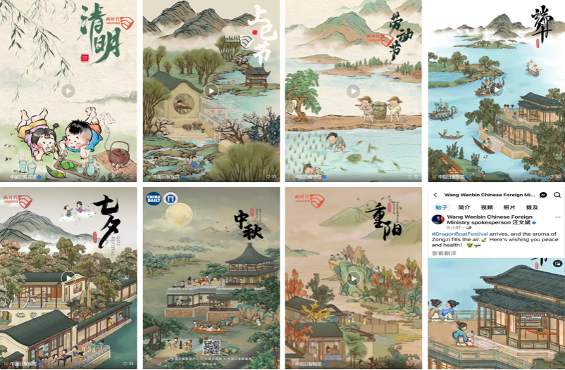 《我们的节日》《二十四节气》两大系列动画成效显著。《我们的节日》系列聚焦传统节日文化,以青春视角激活传统文化基因,经中国日报全媒体矩阵传播,平均点击量超180万,《端午节》动画获外交部官方账号转发,成为中国文化国际传播的优秀范例。该系列创作荣获2024年度全省广播电视和网络视听精品创作高校单元三类扶持项目,并获“奋力推进中国式现代化湖北实践”主题原创网络视听作品创作展播大赛三类作品奖。