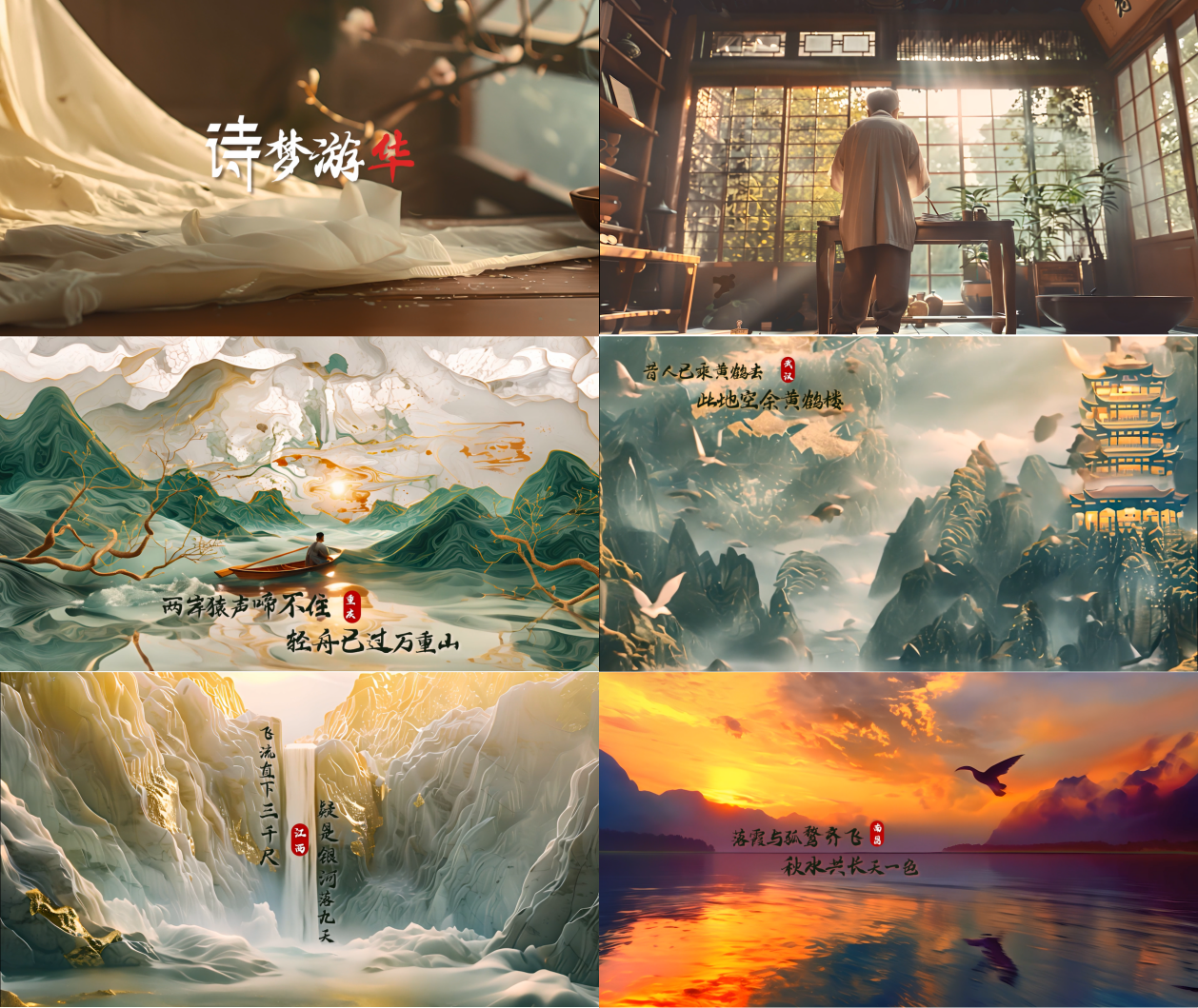 以技术赋能古诗文可视化传播,工作室《AI 画古诗》系列探索古典文学传承新形式。创作团队依托先进算法,精准捕捉《赤壁赋》等经典诗文的意境内涵,将文字意象转化为流动视觉长卷,通过虚实交融的艺术手法重构东方美学表达,实现“诗-画-影”跨媒介转化。这一实践不仅为传统诗文赋予数字时代的传播活力,也为大众直观感受古典文学魅力搭建了便捷桥梁。系列作品入选中国日报“AI画古诗”专题征集活动,并在多媒体平台发布推广。