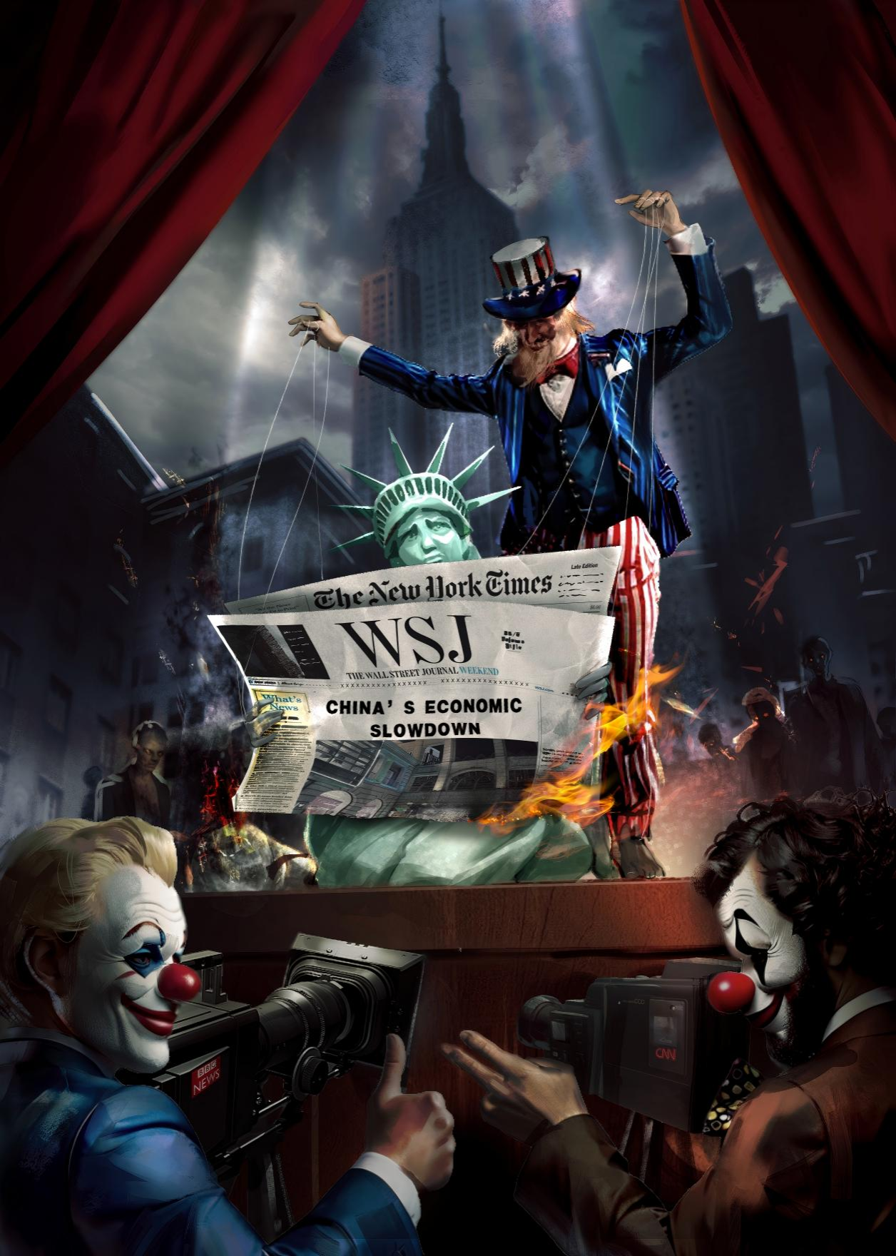 《理响中国·漫评》系列时政漫画以数据可视化与讽刺艺术解构国际议题,《“中国经济放缓论”的荒谬叙事》荣获中央网信办全国第七届互联网辟谣图片类优秀作品奖,彰显青年学子国际视野与责任担当。