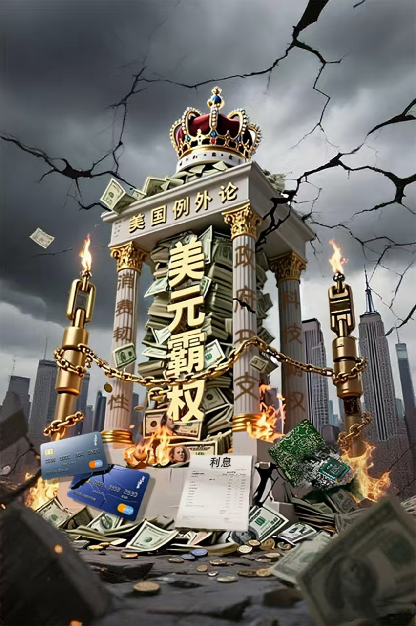 《崩塌的“例外”神坛》解构“美国例外论”的经济支柱,通过画面呈现美元霸权松动、债务高企、创新受阻等“崩塌迹象”,有力论证无视经济规律的“例外”叙事终将难逃“轰然坠地”的宿命,传递尊重规律、务实发展的理性声音。