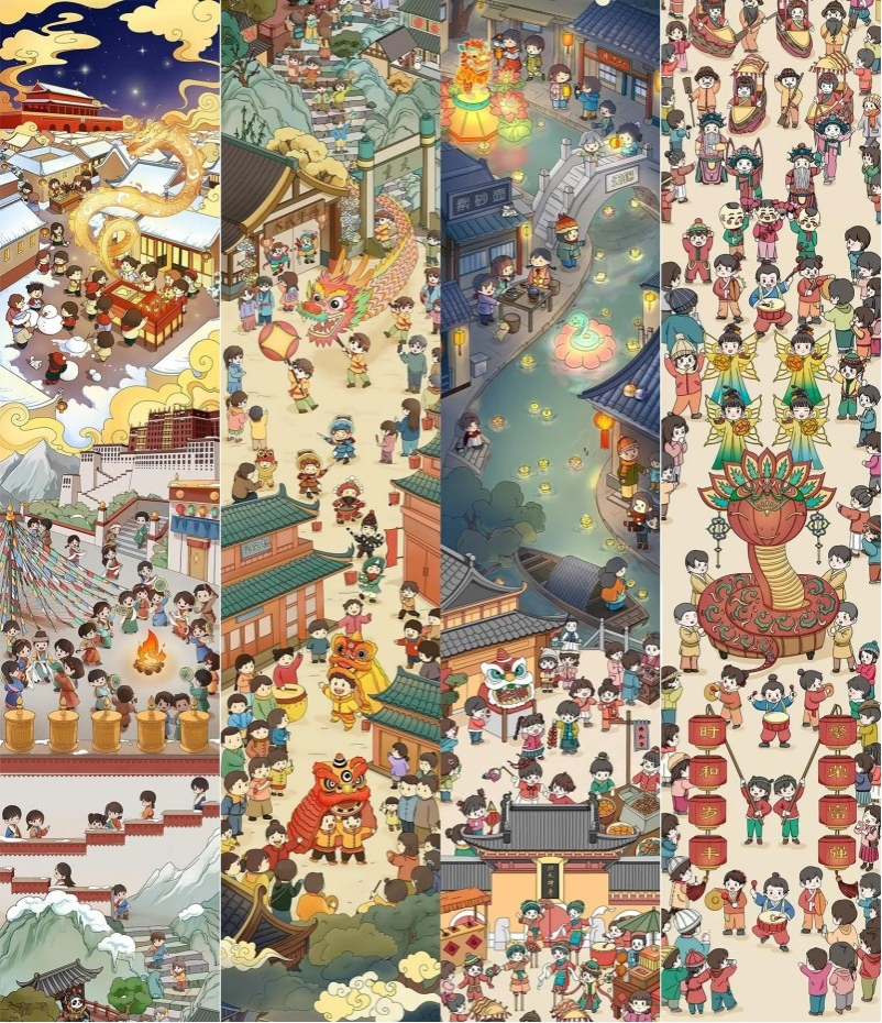 在创作实践层面,作品创造性将手绘艺术与数字化工具、AI算法相结合,打造兼具传统韵味与科技感的视觉表达体系,将传统文化符号转化为生动的视听语言,在推动中华优秀传统文化创造性转化与创新性发展的同时,极大地提升了内容的传播力与影响力。《我们的节日》系列平均点击量突破180万,其中《端午节》动画被外交部官方账号转发;《二十四节气》系列入选省级委托项目,为地域文化数智化传播提供实践样本;《AI画古诗》系列依托算法实现“诗-画-影”跨媒介转化,重构东方美学数字化表达范式;《漫评荆楚》系列则以数字漫画活化荆楚文化资源与非遗项目,相关作品获省级网评大赛多个奖项,充分彰显数智技术在文化传承领域的独特价值。