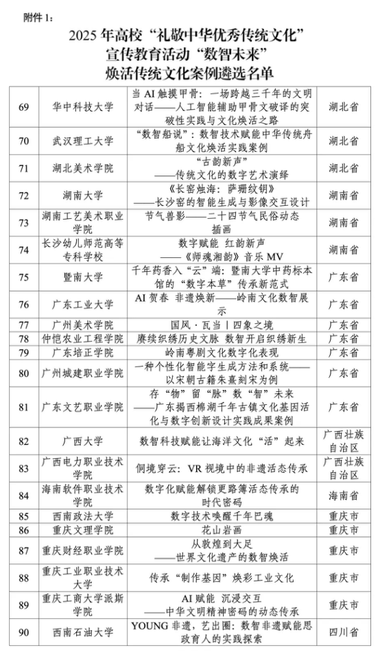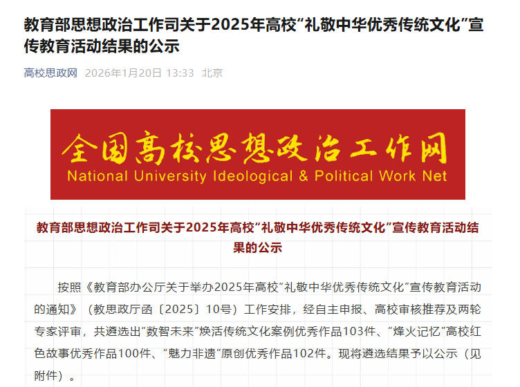 近日,2025年高校“礼敬中华优秀传统文化”宣传教育活动遴选结果正式公示,经自主申报、高校审核推荐及两轮专家评审,全国共遴选出“数智未来”焕活传统文化案例优秀作品103件。其中,湖北省仅有3件作品入选,湖北美术学院影视动画学院“动‘话’时代,艺绘中国”工作室申报的《“古韵新声”——传统文化的数字艺术演绎》成功获评,为高校推进传统文化传承创新提供了鲜活范例。