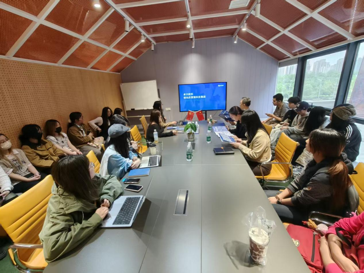 在企业负责人的带领下,师生实地参观了公司近 2000平米专业摄影基地。人力资源负责人围绕企业发展历程、业务布局、行业优势及人才需求等方面进行了全面介绍,让师生对营销科技行业有了更为直观、系统的认识。